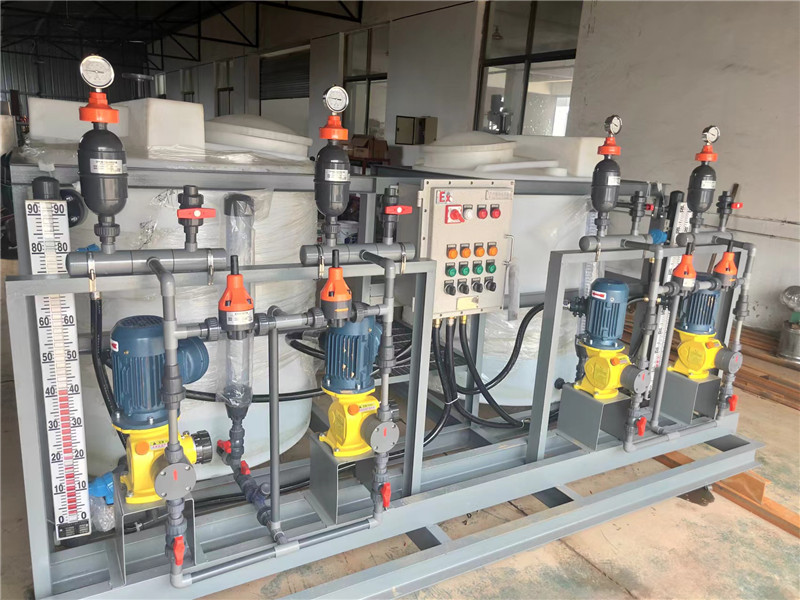 循环水加药装置是一种全新概念的化学水处理加药设备,广泛于火力发电、石油、化工等行业炉水处理系统、原水处理系统以及废水处理系统。它是由计量泵、溶液箱、控制系统、管路及阀门等组件安装在同一底座上,实现药液溶配、计量投加功能。